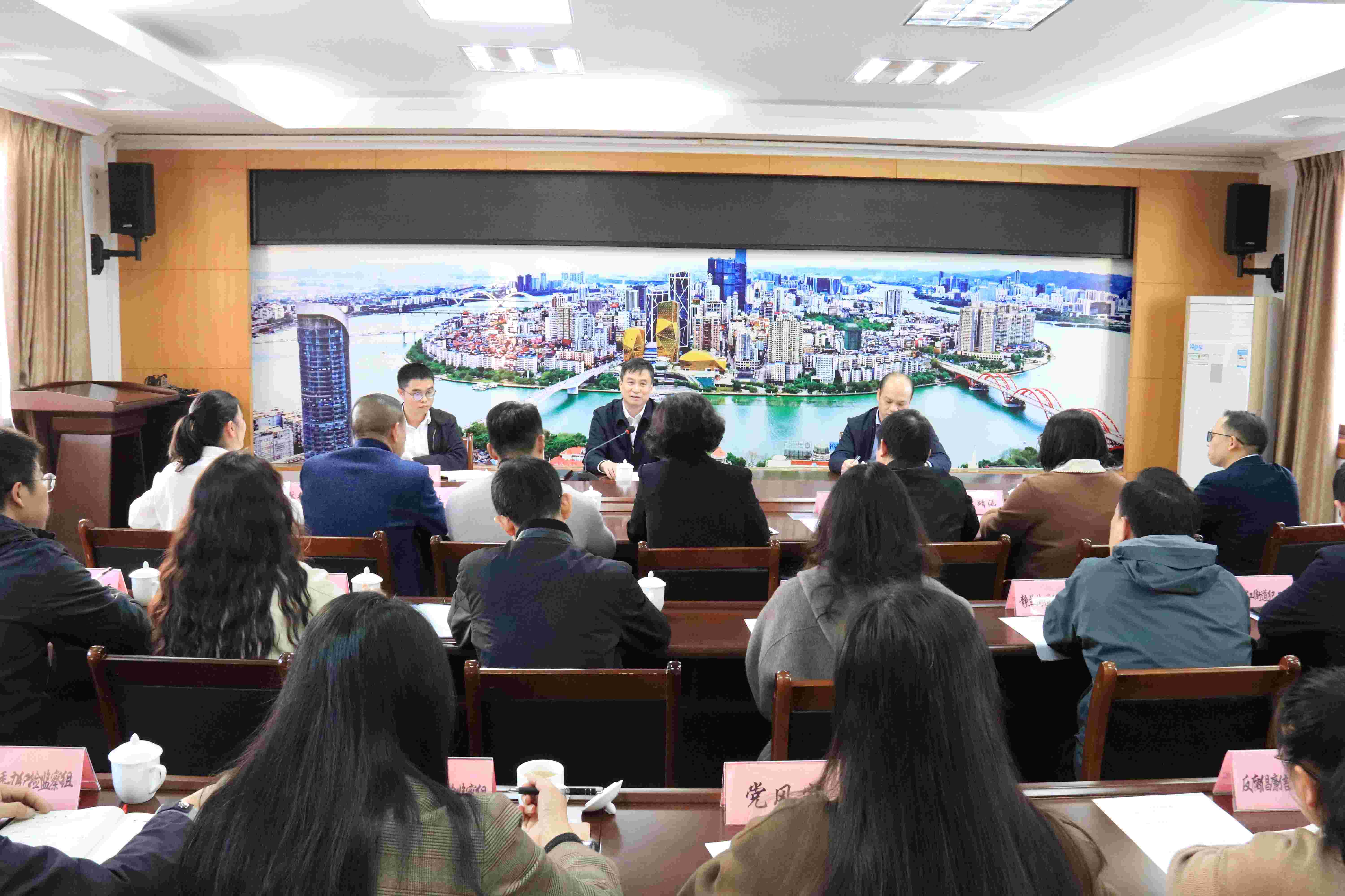 图为蔡立华在城中区纪委监委机关主持召开工作座谈会