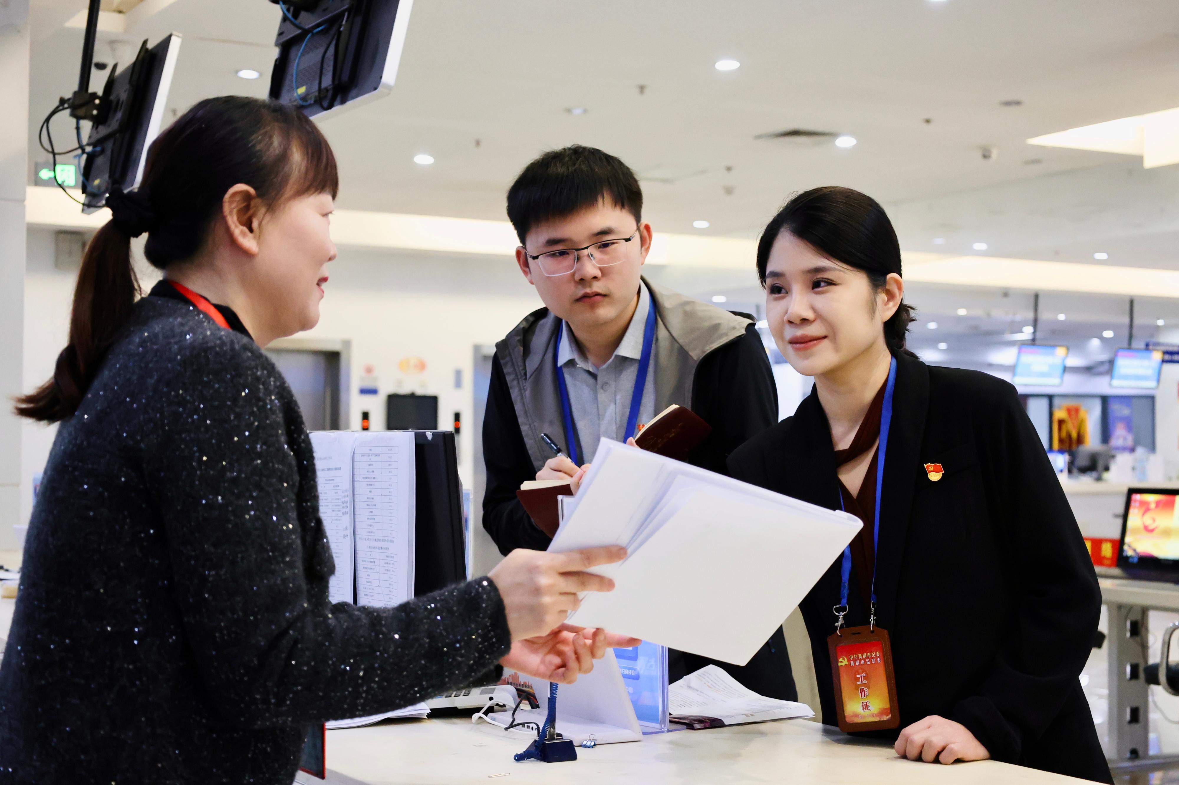 河南省舞钢市纪委监委深化“一线实战、师徒帮带、专项集训、交叉历练”等多渠道练兵机制,让纪检监察干部在监督检查、审查调查一线补短板学真本领、强能力练硬功夫。图为该市纪检监察新兵在业务骨干带领下实地走访医保服务窗口收集问题线索。(河南省舞钢市纪委监委 毛永慧 摄)