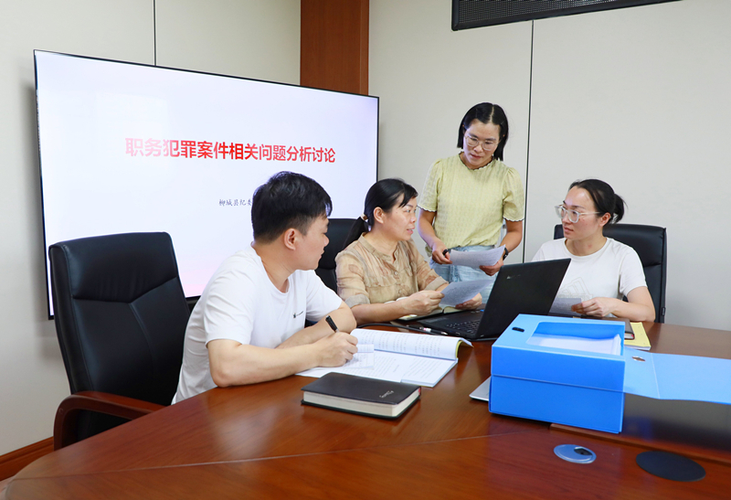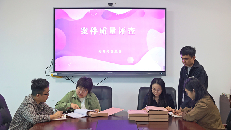 湖南省益阳市南县纪委监委聚焦案件质量“生命线”,通过集中研讨、以案代训、案后讲评等方式,有针对性开展典型案例剖析,切实提升纪检监察干部执纪执法水平。图为该县纪检监察干部对办结案件开展案件质量评查。(湖南省益阳市南县纪委监委 汤佳怡 摄)