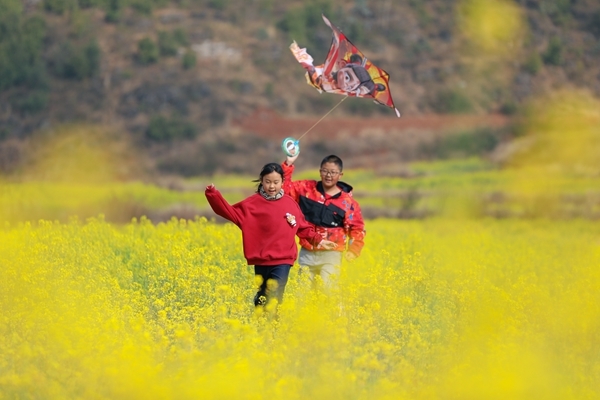 二月春风拂过,云南省陆良县芳华镇复兴村已是满目金黄、油菜飘香,处处春意盎然。孩子们在花海间追逐嬉闹,沐着暖阳、伴着花香,尽享春日里的烂漫时光。(云南省陆良县纪委监委供 王勇 摄)