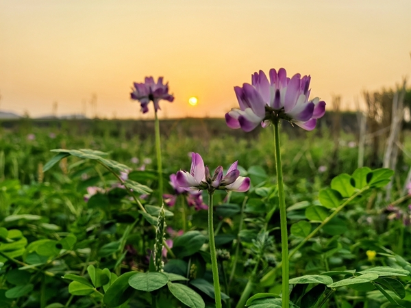 春风拂野,晚霞铺锦。广西壮族自治区柳城县东泉镇紫云英花田如紫绸漫野,霞光轻染,花影叠翠,风携花香漫过黄昏,天地间尽是温柔绚烂的诗意。(广西壮族自治区柳城县纪委监委供 胡善文 摄 )