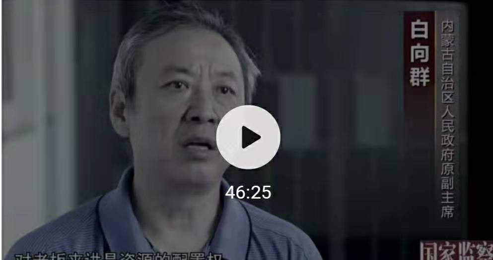 白向群(内蒙古自治区人民政府原副主席):成了一把手,就在那个时候自己的思想有了波动,犯罪源头的思想苗头已经出来了。那么我要走一条既要能当官,又要能够发财的所谓中间之路。