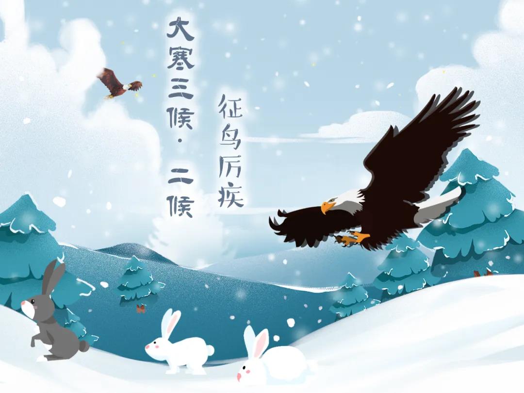 二候征鸟厉疾,指鹰隼之类的征鸟,此时捕食能力很强,它们盘旋于空中到处寻找食物来抵御严寒。