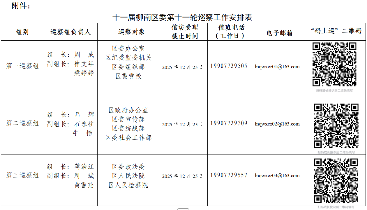 附件:十一届柳南区委第十一轮巡察工作安排表