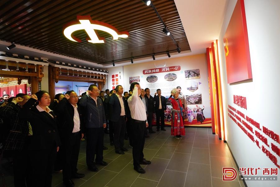 党员干部在融水苗族自治县廉政教育基地重温入党誓词。通讯员 龙林智 摄