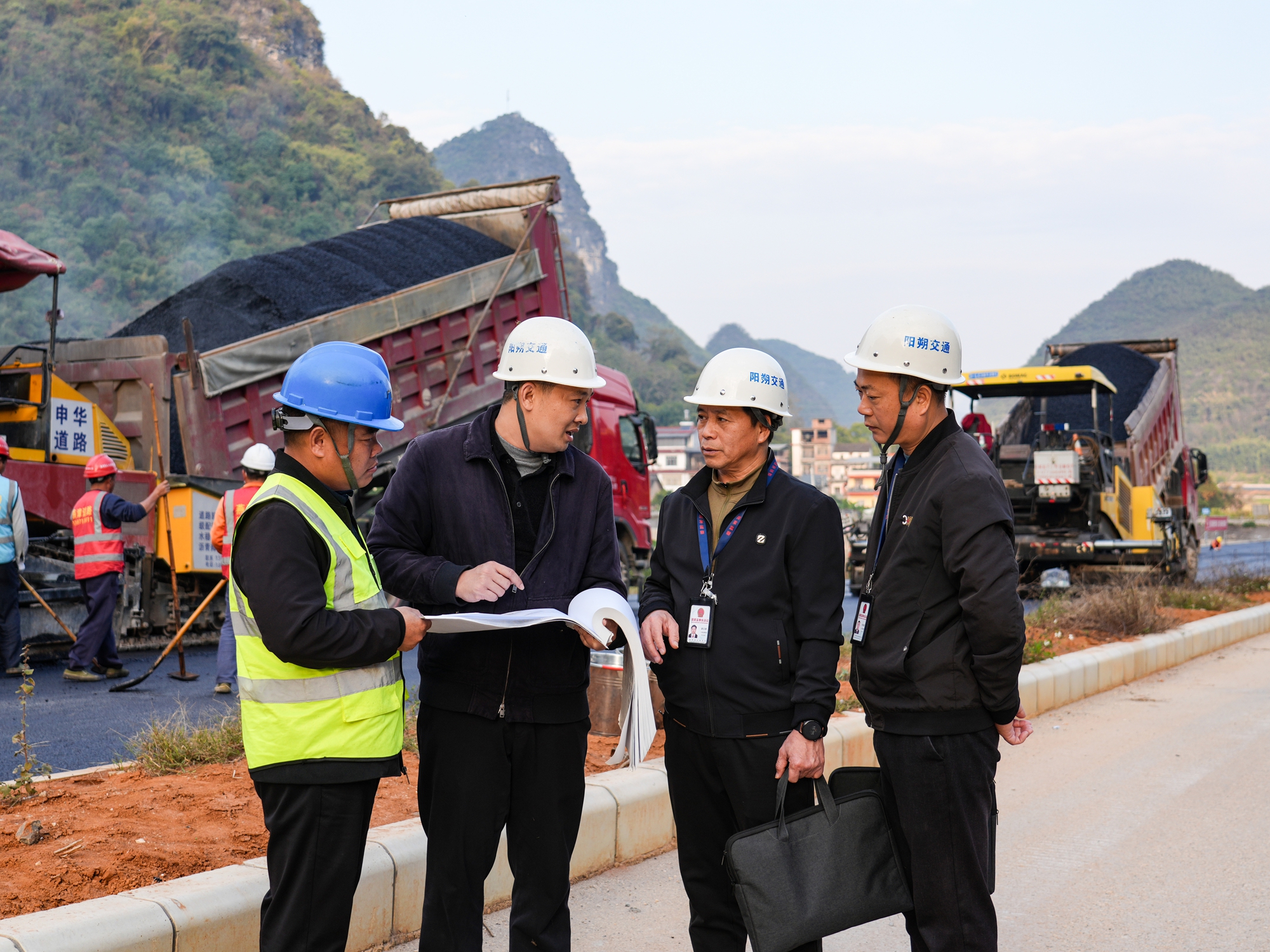 阳朔县纪委监委把护航重大项目建设作为监督的着力点,紧盯立项审批、项目运行、资金落实等关键环节跟进监督,确保项目廉洁高效推进。图为该县纪检监察干部在福利大桥施工现场走访了解情况。(阳朔县纪委监委供 徐维薇/摄)