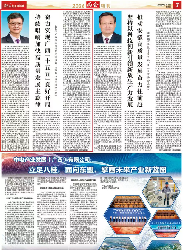 立足面向东盟比较优势发展人工智能,强化高质量发展智能引领。人工智能时代,广西不能缺席、不能落后。但广西技术薄弱、人才短缺、资金不足,无法与发达地区拼数据拼算力拼算法,必须因地制宜、另辟蹊径,找准小切口,走差异化发展道路。广西打开门就是越南,走两步就到东盟,面向东盟的区位优势、平台优势、数字通道优势和小语种人才优势是广西核心竞争力,东盟国家也迫切希望搭上中国人工智能发展这趟快车。我们积极探索“北上广研发+广西集成+东盟应用”的发展路径,把国内顶尖的人工智能技术引进来,在广西进行本地化集成、场景化融合,把成熟的“人工智能+”解决方案推介到东盟国家去,高质量建设面向东盟的人工智能合作高地。去年9月,广西获批建设中国—东盟国家人工智能应用合作中心,全区人工智能发展纳入国家布局、取得先发优势。春节前夕,我们成功举办面向中国—东盟人工智能应用合作伦理安全座谈会和广西与越南五省市党委书记新春会晤,就持续深化人工智能合作达成重要共识。正月初八,广西代表团访问香港、澳门,成功签署人工智能等领域37项合作协议。2025年,全区人工智能核心产业产值突破800亿元。“十五五”时期,我们将更加注重策略、集成、应用、开放、安全,加快AI赋能千行百业,在服务国家、服务东盟中促进广西自身产业升级、实现高质量发展。