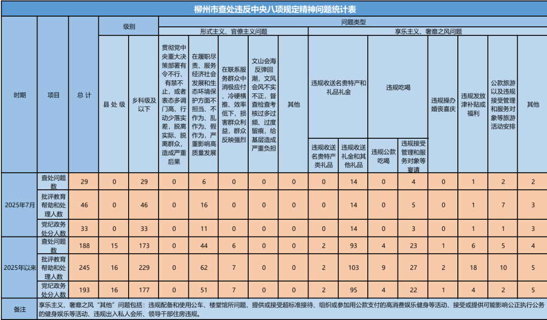 2025年1-7月全市查处违反中央八项规定精神问题188起