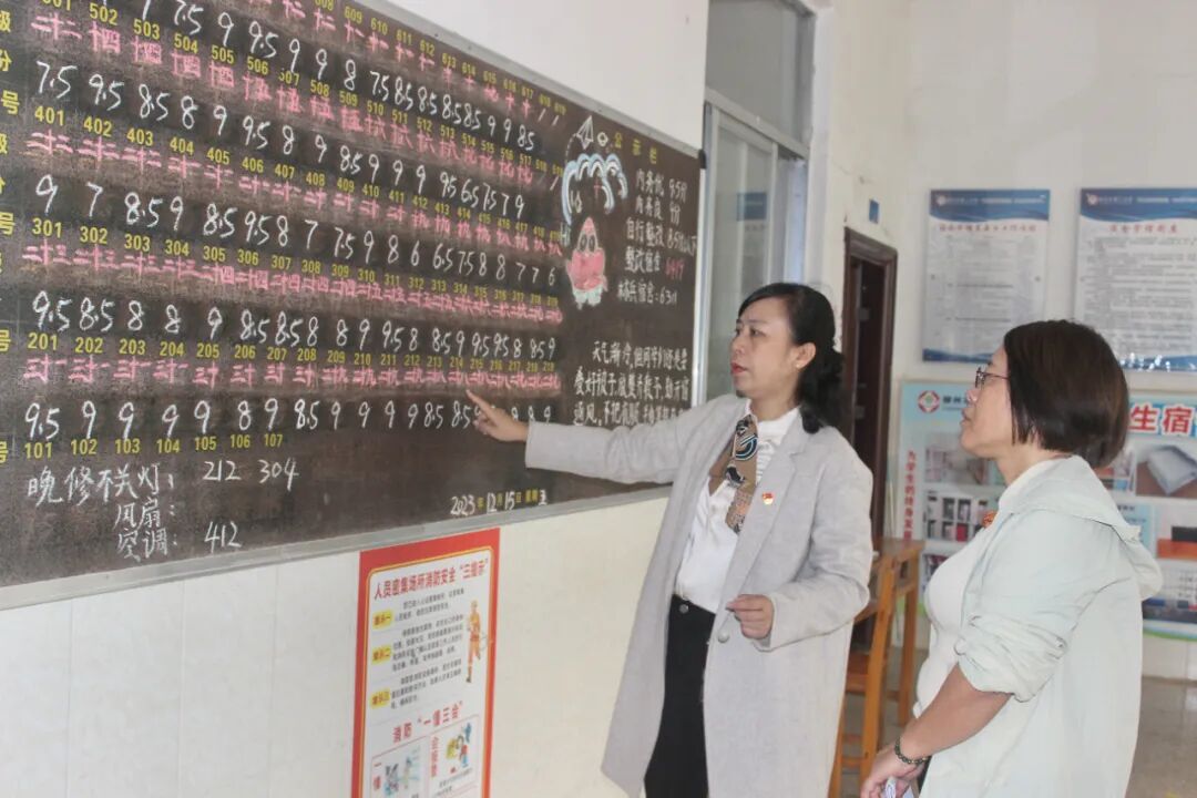 李逊(左)检查学生宿舍内务评分