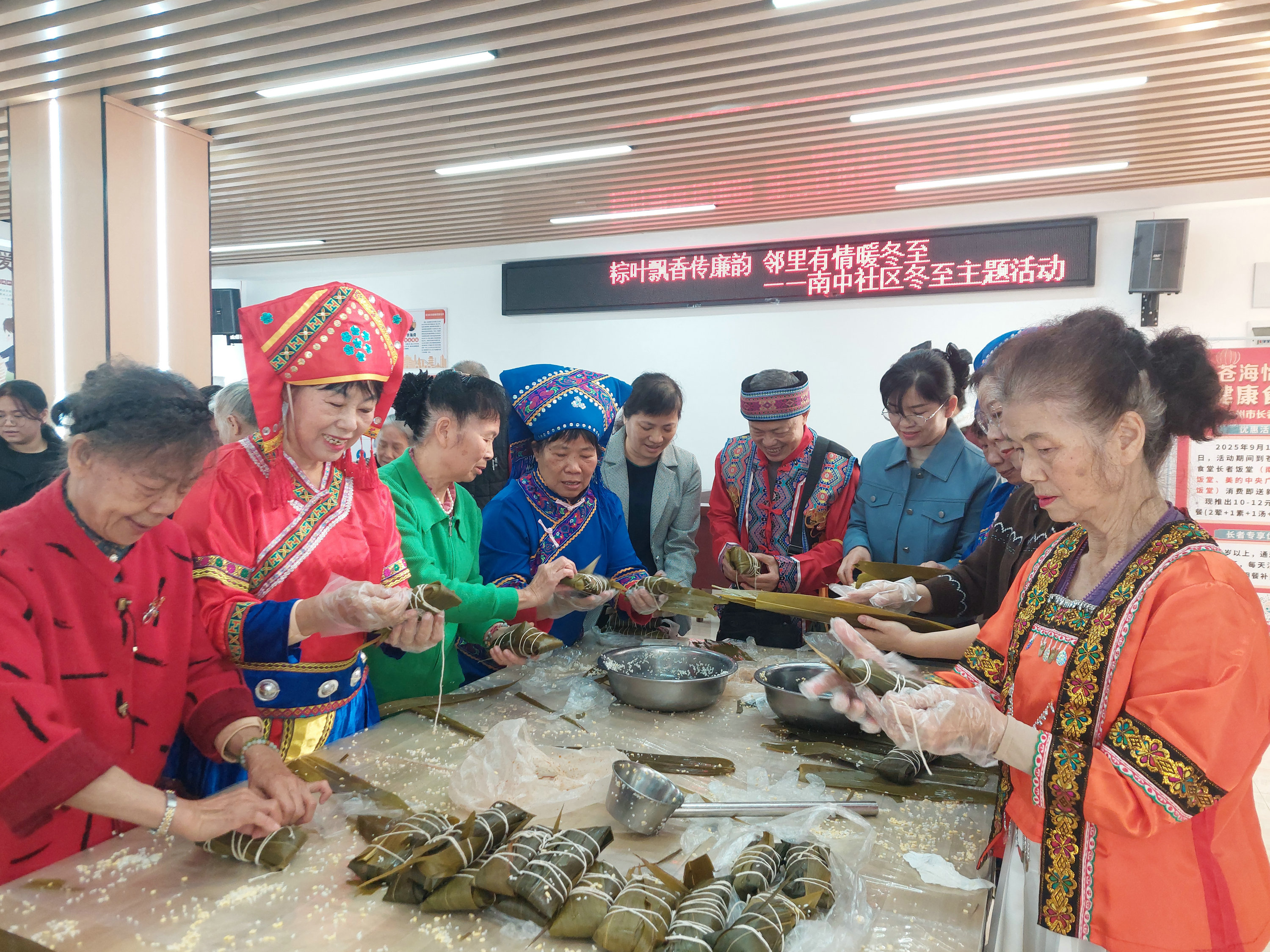 临近冬至,梧州市万秀区南中社区举办“粽叶飘香传廉韵 邻里有情暖冬至”主题活动,组织辖区各族群众共庆冬至。(梧州市纪委监委供 吕晓艺/摄)