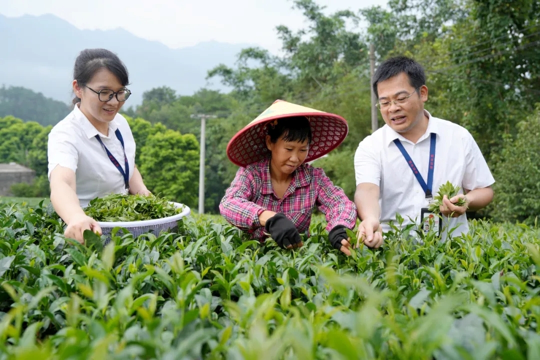 图为近日,广西壮族自治区贺州市昭平县纪委监委干部向茶农了解茶叶产业扶持政策落实情况。王巧妮摄