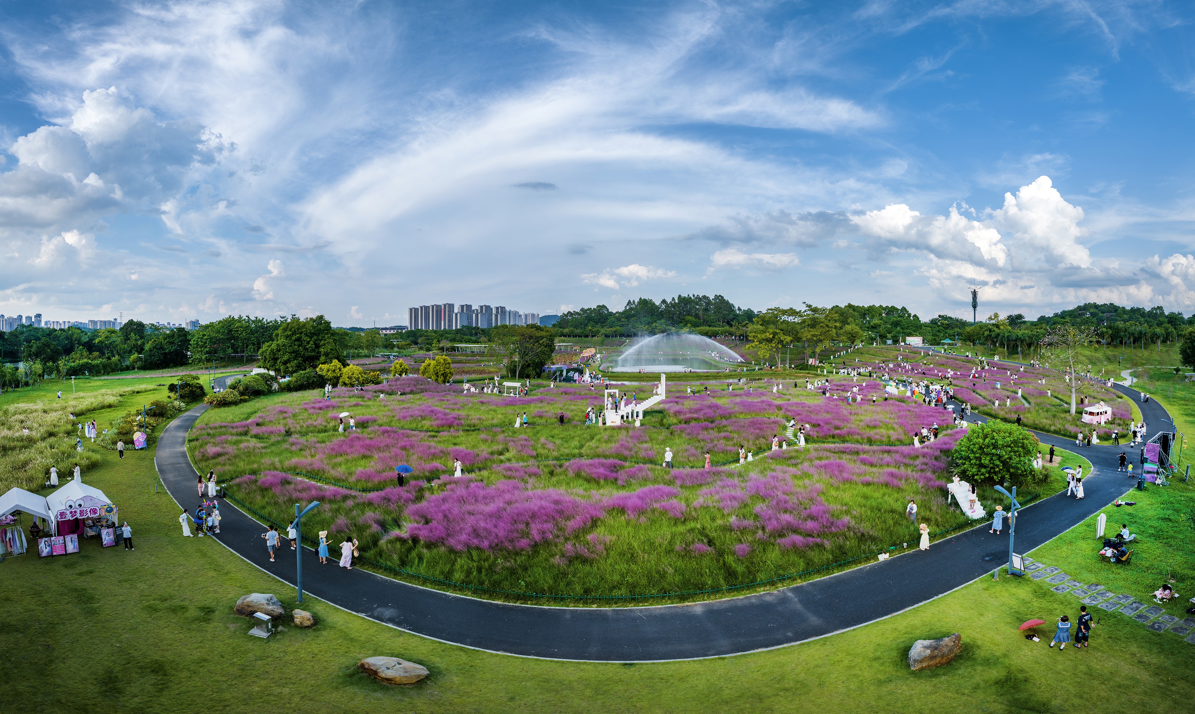 南宁园博园蓝天白云相映,大片粉黛乱子草盛情绽放,粉色的花海如霞似梦,吸引了一波又一波的游客前来观赏,乐享秋日浪漫时光。(宾阳县纪委监委供 曾祥忠/摄)