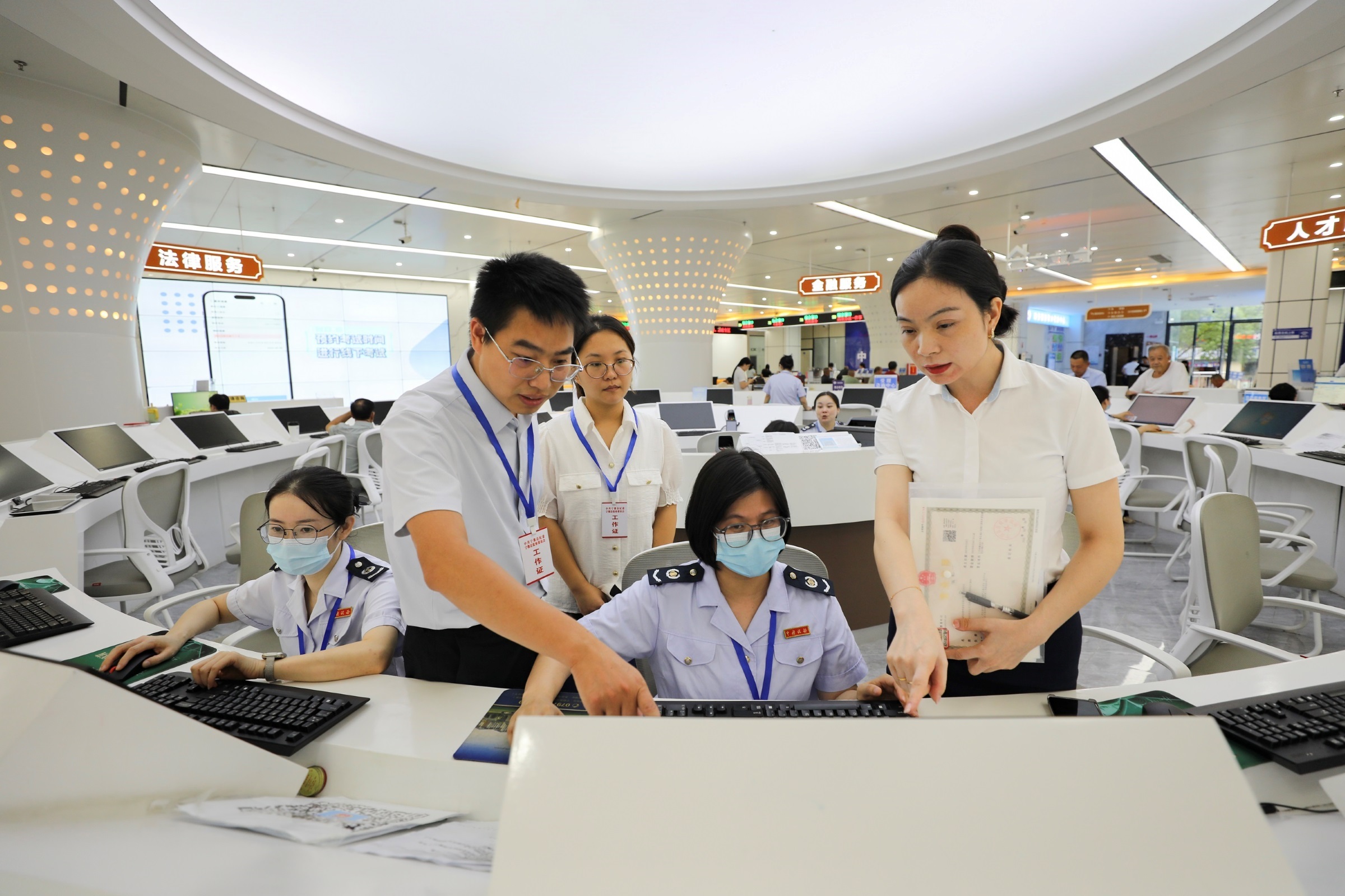 江西省宁都县纪委监委紧盯资金密集、资源富集等重点领域,通过数据关联、交叉比对、碰撞分析,发挥大数据信息化作用,提高发现问题的精准性和时效性。图为该县纪检监察干部通过税务部门了解企业相关信息。(江西省宁都县纪委监委 陈育文 摄)