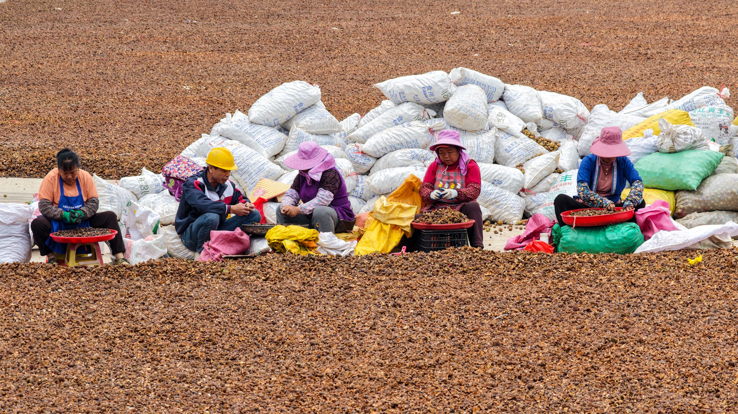 小雪前后,正值油茶果丰收之时。在三江侗族自治县程村工业园区油茶晾晒场上,当地群众抓住晴好天气,忙着分拣油茶果,现场一片繁忙。(三江侗族自治县纪委监委供 龚普康/摄)