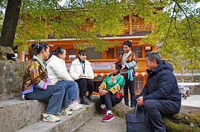 广西壮族自治区融水苗族自治县纪委监委组织纪检监察干部深入苗家侗寨,听民声、察民情,推动解决群众急难愁盼。图为工作人员在杆洞乡向村民了解相关情况。(龙林智)