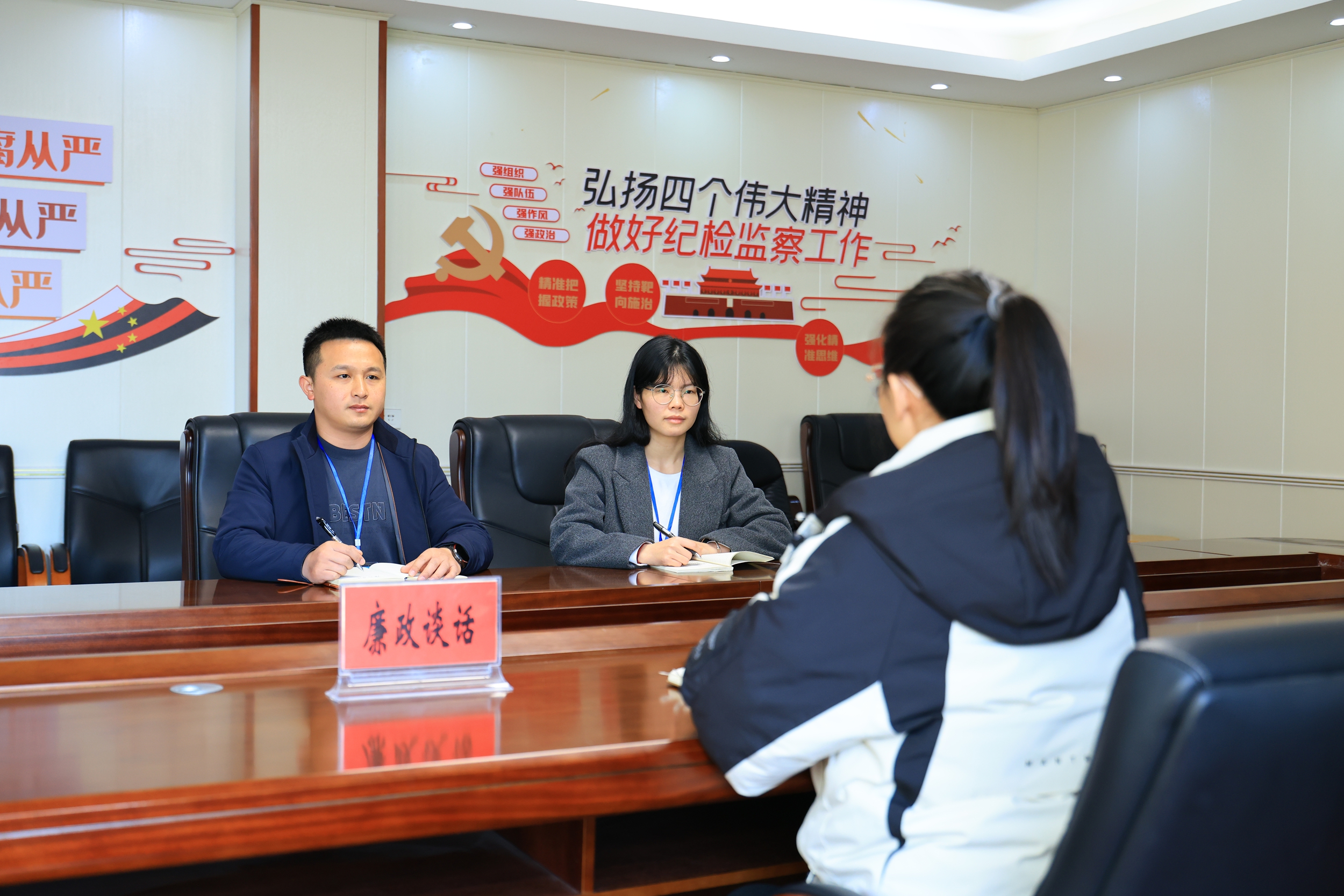 全州县纪委监委聚焦新提拔、年轻及关键岗位干部,通过开展廉政谈话、警示教育、谈心交流等,引导年轻干部严于修身律己、筑牢廉洁防线。图为近日,该县纪委监委组织开展年轻干部节前廉政谈话。(全州县纪委监委供 谢永欣/摄)
