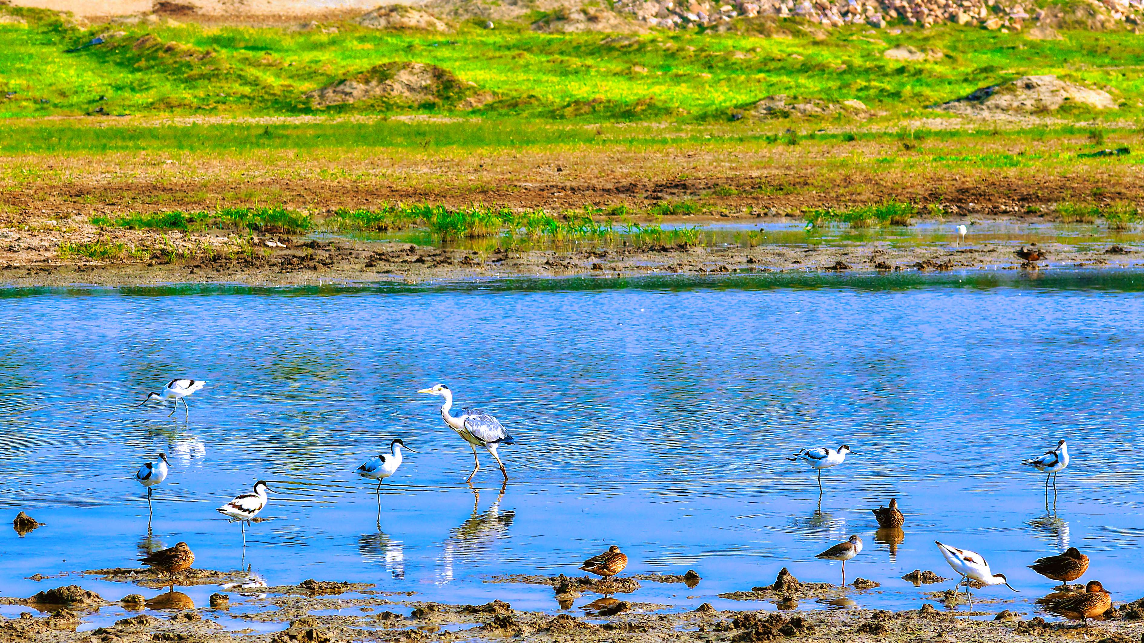 立春时节,江苏省启东市滨江绿廊浅滩区域,水鸟在澄澈波光里自在踱步、游弋,岸边新绿萌动,枯黄与鲜翠交织,处处漾着春日初醒的生机,一幅湿地生态画卷,尽显自然和谐之美。(江苏省启东市纪委监委供 潘杨 摄)