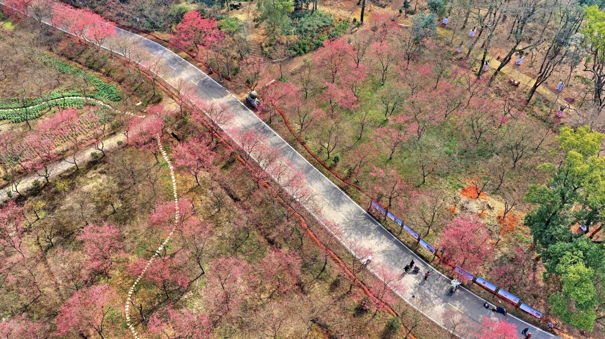 湖南省常宁市大义山自然生态保护区的百万樱花园迎来了樱花绽放的季节,满园春色,灿若云霞,景象壮观。(湖南省常宁市纪委监委供 刘东华 摄)