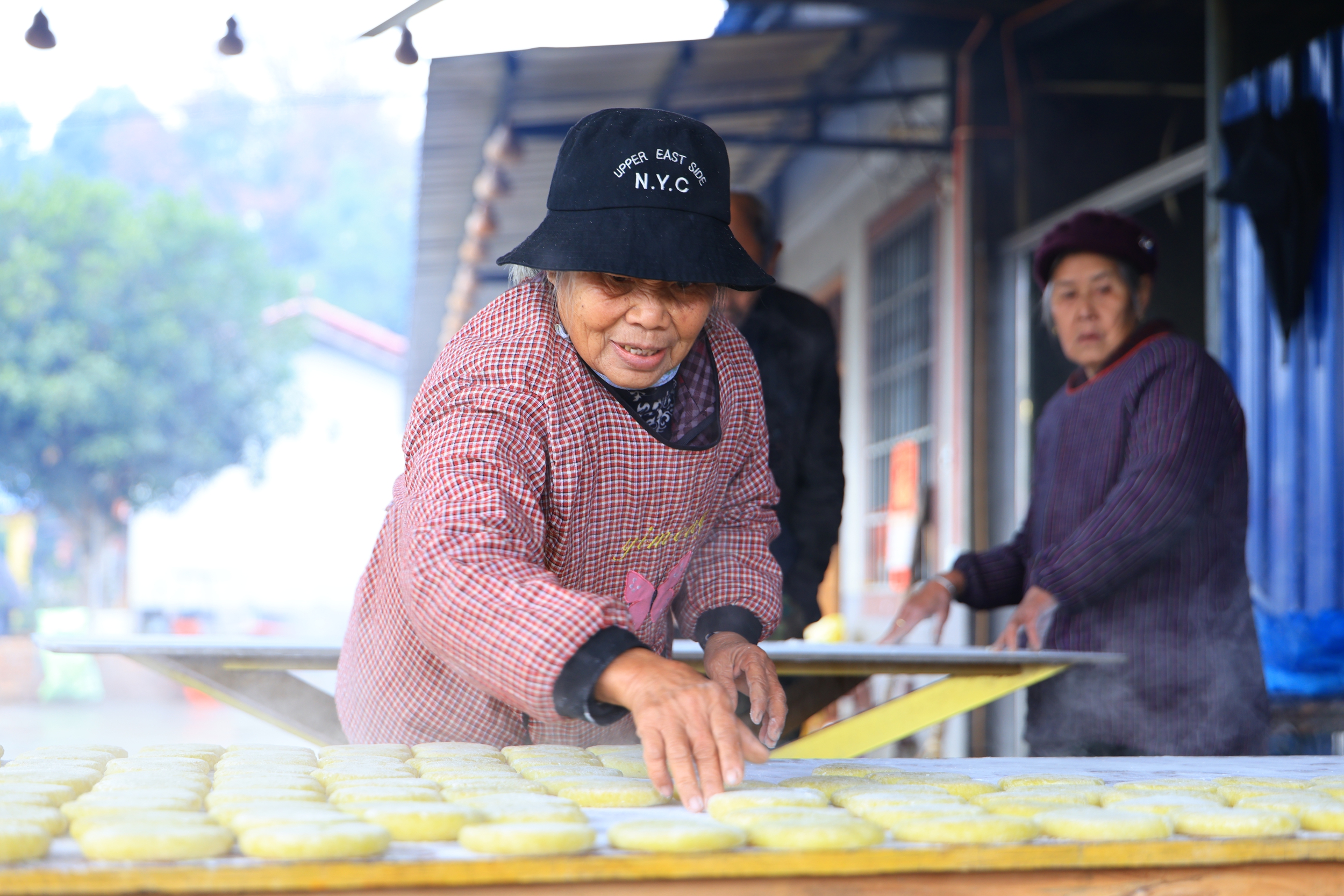 立春至,糍粑飘香。在全州县龙水镇,乡亲围桌手作糍粑,金黄的圆饼整齐码开,老人脸上漾着笑意,烟火里满是迎春的喜悦与团圆的暖意。(全州县纪委监委供 谢永欣/摄)