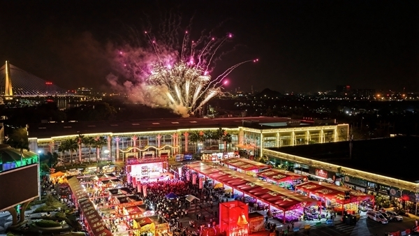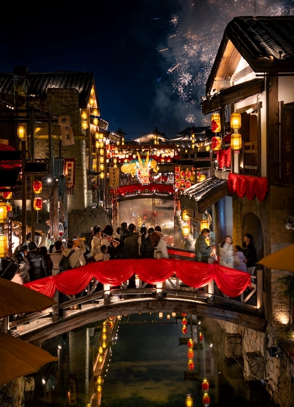 广东省佛山市顺德区陈村镇第42届迎春花市开启,花市现场烟火璀璨。(广东省佛山市顺德区陈村镇纪委供 郭建光 摄)