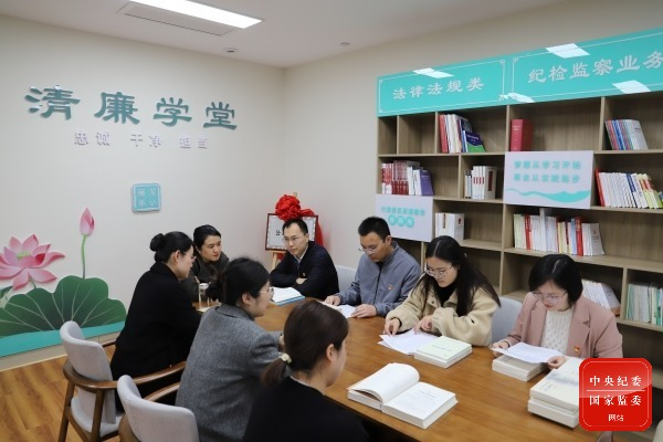 山东省济宁市微山县纪委监委实施青年理论学习攀登行动,培养纪检监察干部讲政治重学习、干中学学中干的过硬作风,锻造高素质专业化的领头雁。图为该县纪检监察干部在清廉学堂开展读书分享活动。(山东省微山县纪委监委 李佳粮 摄)