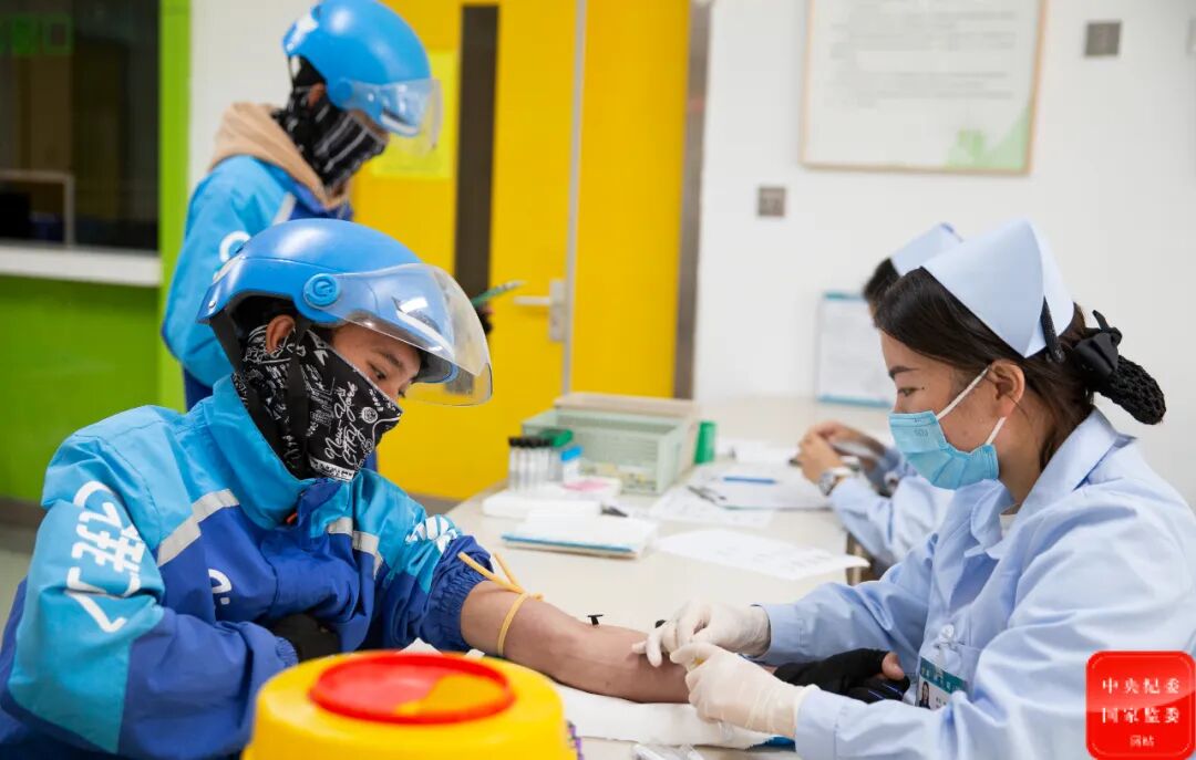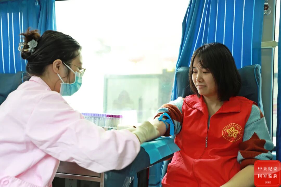 学雷锋纪念日到来之际,广西壮族自治区柳城县纪委监委组织纪检监察干部挽臂献血,以实际行动凝聚公益力量,用热血传递爱与希望。(广西壮族自治区柳城县监委监委供 陈婕 摄)