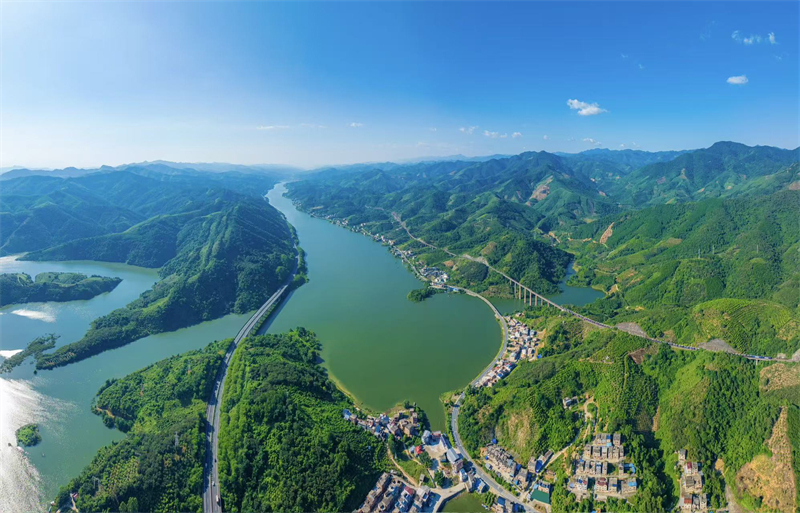 百色市右江区汪甸瑶族乡两琶村,青山如黛环伺,碧水似镜映云,瑶家村寨隐现其间,每处景致都透着原生态的灵秀与静谧。(百色市右江区纪委监委 黄永佳/摄)