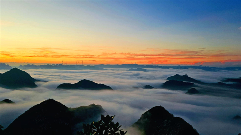 九月清晨,登高俯瞰田东县作登瑶族乡平略村陇黎屯,晨光浸染天际,云海翻涌,舒卷自如,山峦于其间时隐时现,宛若一幅浑然天成的绝美画卷。(田东县纪委监委 黄天福/摄)