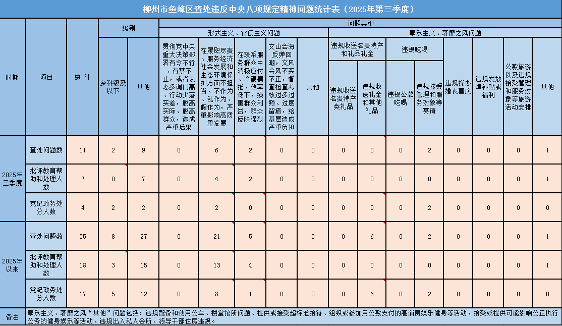 2025年7-9月鱼峰区查处违反中央八项规定精神问题11起